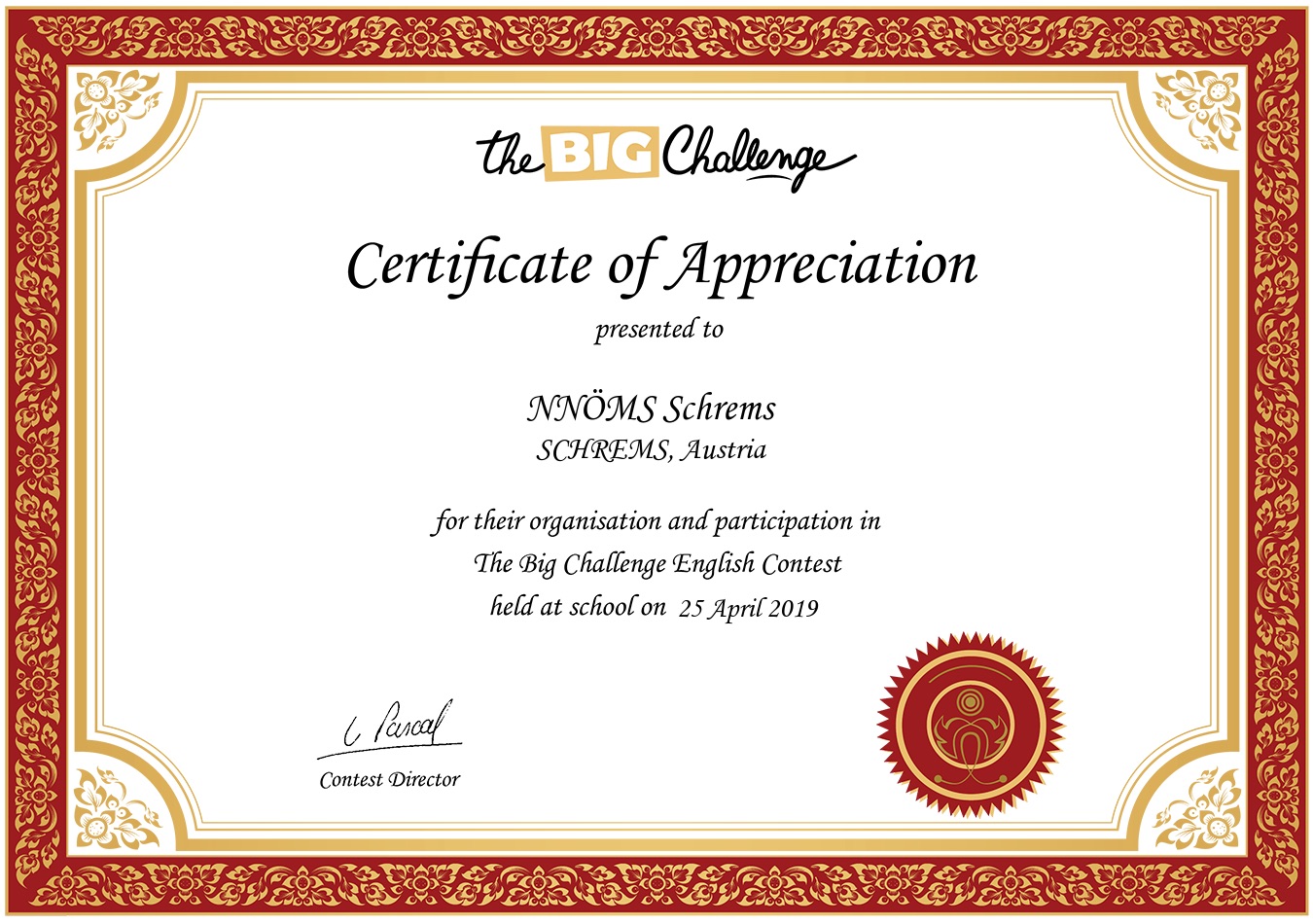 Dieses Jahr konnten wir wieder tolle Ergebnisse im europaweit durchgeführten Englisch-Wettbewerb "The Big Challenge" erzielen.