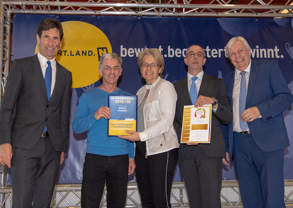 Bildungsdirektor Mag. Johann Heuras und Sportlandesrätin Petra Bohuslav überreichten den Vertretern unserer Schule das Schulsportgütesiegel in Gold. Wir punkteten durch eine erhöhte Anzahl an Sportstunden und zahlreiche attraktive sportliche Angebote.