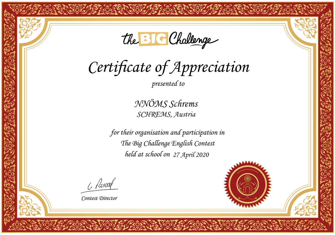 Herausragende Ergebnisse konnten wir dieses Jahr wieder beim europaweit durchgeführten Englisch-Wettbewerb "The Big Challenge" erzielen.