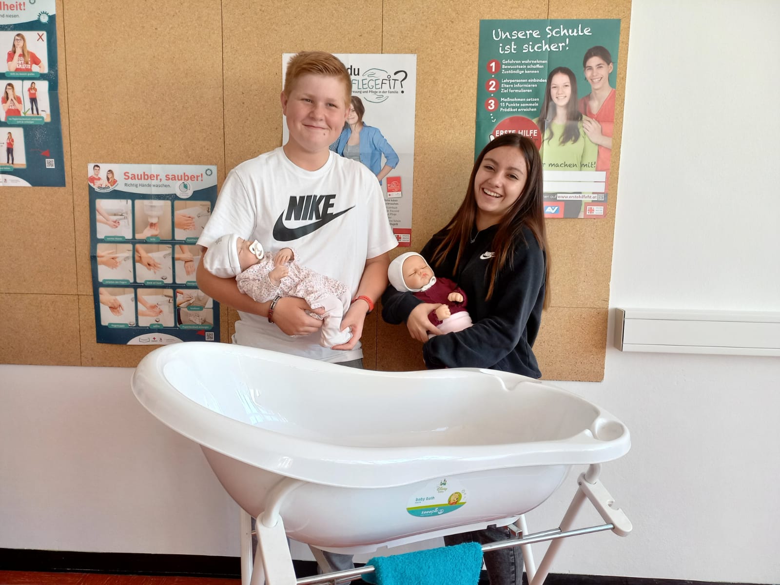 Diese umfassen neben einem Erste-Hilfe-Kurs auch einen Babysitter- und einen Pflegefit-Kurs. Jemandem zu helfen, bedeutet Menschen aller Altersstufen zu unterstützen und zu versorgen. Im Zuge der Kurse lernen die Schülerinnen und Schüler der Mittelschule Schrems wie sich Babys, Kleinkinder und Kinder entwickeln und was diese benötigen.