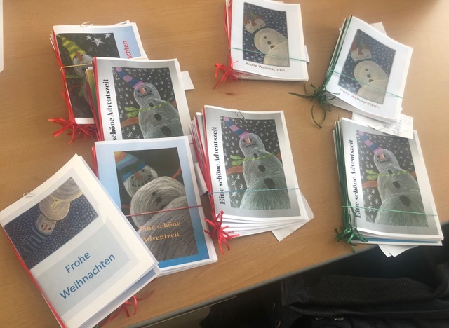 Die Schüler*innen der 2a und 2b gestalteten Weihnachtskarten für das PBZ Schrems. Die Kinder zeichneten Schneemänner, scannten diese Zeichnungen auf dem Laptop ein und gestalteten anschließend mit dem Programm Publisher bunte Weihnachtskarten für die über 90 Bewohner*innen des Pflege- und Betreuungszentrums.