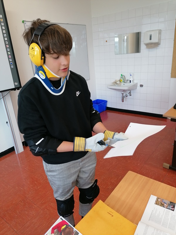 Wie ist es „ALT“ zu sein? Dieser Frage gingen die Schüler*innen der 4. Klassen im Zuge ihres Pflegefitkurses nach. Mit Hilfe verschiedenster Utensilien - wie dicken Handschuhen, Knie- und Ellenbogenschützer, Gehörschutz und Halskrause - wurden gewisse Einschränkungen des Lebens simuliert und brachten den Jugendlichen im Sozialschwerpunkt so manche alltäglichen Hindernisse alter Menschen näher.