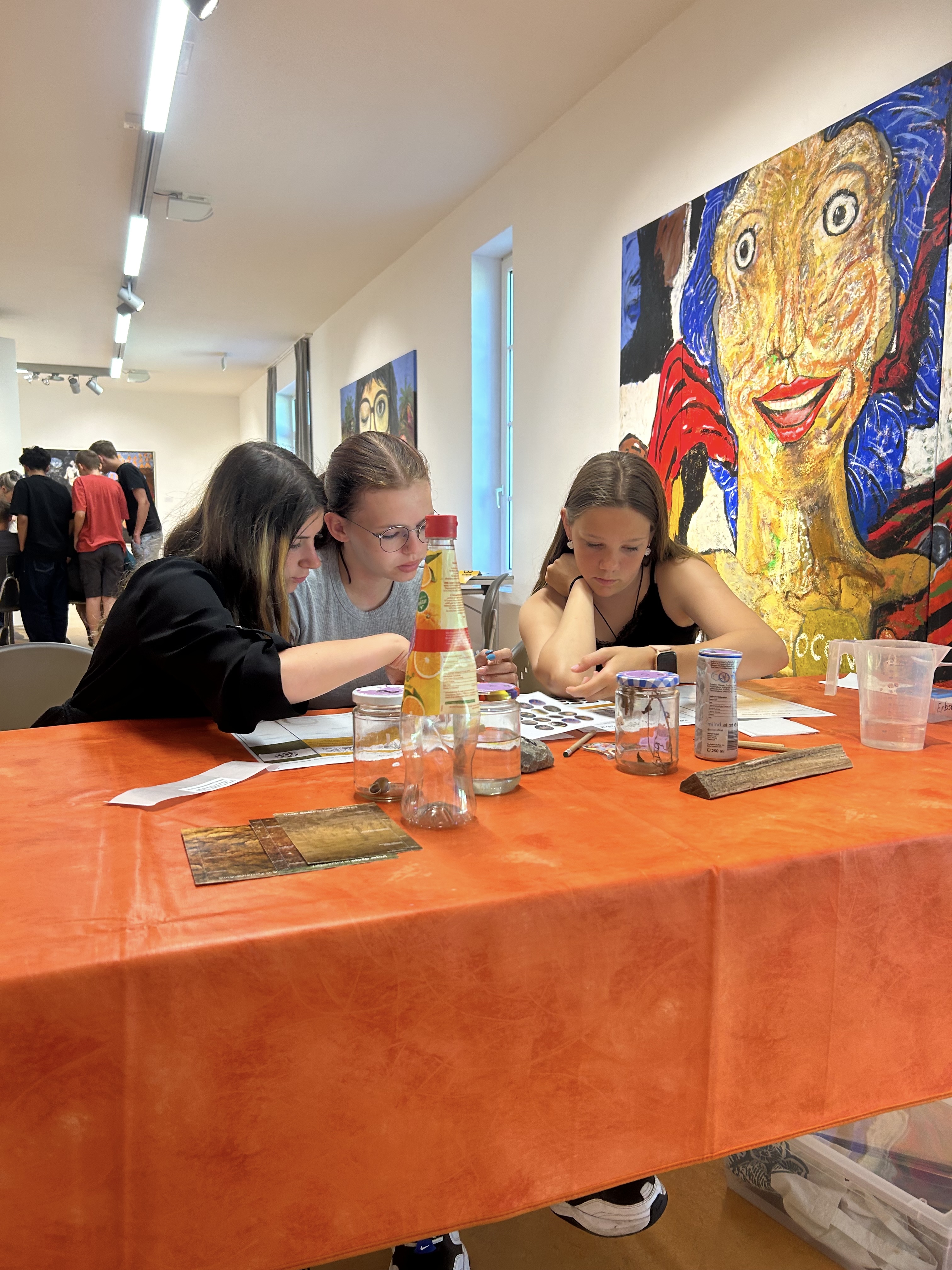 Die Schüler*innen der 3a verbrachten einen kreativen Vormittag im Kunstmuseum Schrems. Beim Malen mit Erdfarben – natürlichen Pigmenten aus Erde, Sand und Gestein – stand das Arbeiten mit der Natur im Mittelpunkt. Nach einer kurzen Einführung und Führung durch das Museum gestalteten die Kinder mit Pinseln und Händen eigene Kunstwerke.