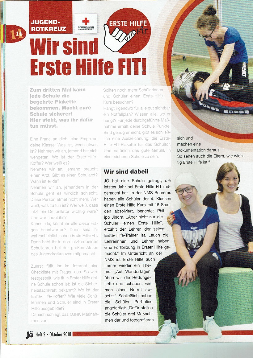 Die umfangreichen Tätigkeiten der NMS Schrems im Bereich Erste-Hilfe haben auch österreichweit für Interesse gesorgt. Im Herbst wurden Beiträge aus unserer Schule in mehrer überregionalen Zeitschriften publiziert.