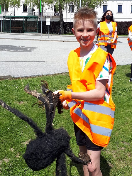 Die 3. Klassen mit dem Schwerpunkt "Sozial-Vital" und ihre Klassenlehrerin Verena Jindra haben sich mit Unterstützung des Gemeindeverbandes Gmünd durch Sabrina Prinz auf die Suche nach achtlos weggeworfenen Müll gemacht.