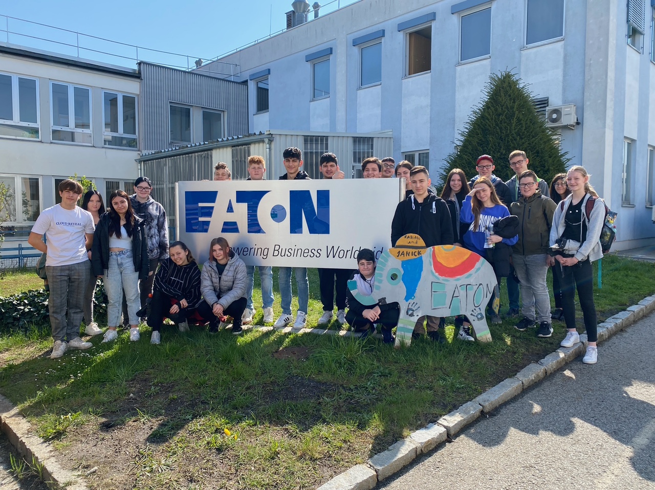 Am 3. Mai waren die Schüler*innen der vierten Klassen zu Besuch bei der Firma Eaton in Eugenia. Nach einem informativen Vortrag über die Entstehungsgeschichte und das Leistungsspektrum des Unternehmens fand eine Werksbesichtigung statt.