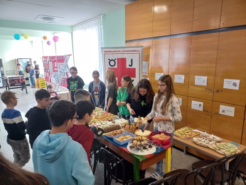 Bei einer gemeinsamen Sammelaktion durch die Jugendrotkreuzreferenten beider Schulen bestand die Möglichkeit für jedes Kind mit einem frei gewählten Betrag diese Aktion zu unterstützen. An der Mittelschule wurde zusätzlich ein Kuchen- und Aufstrichbuffet veranstaltet, dessen Reinerlös zur Gänze in den Spendentopf wanderte. In Summe konnten die Schüler*innen und Lehrer*innen der Volks- und Mittelschule Schrems dadurch 2.656,88 Euro an Spenden sammeln.