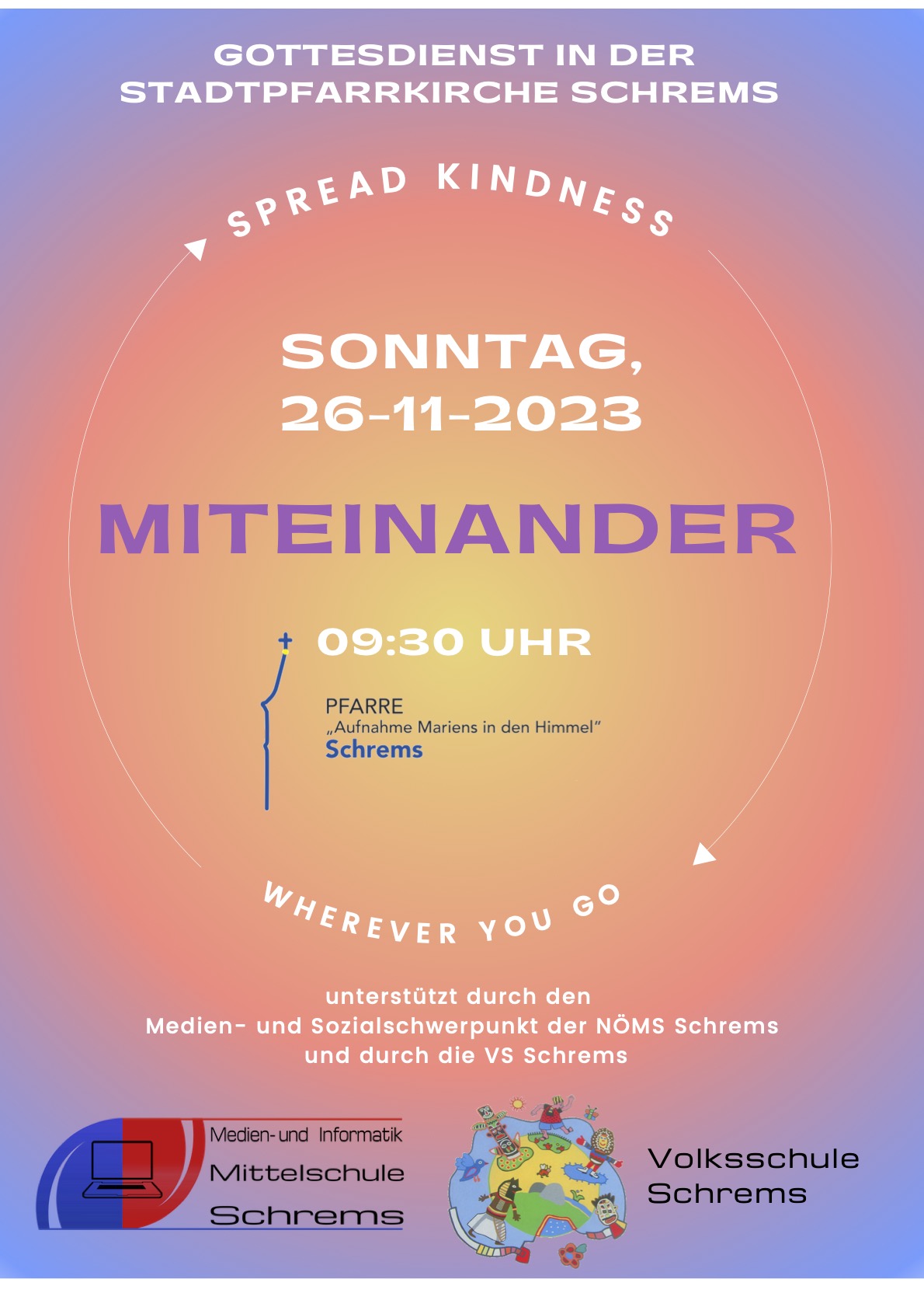 Am 26. November gestaltet die VS und MS Schrems gemeinsam einen Gottesdienst mit der Stadtpfarrkirche Schrems. Wir freuen uns auf Ihr Kommen!